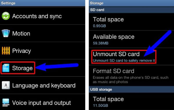 - Appuyez sur Démonter la carte SD.