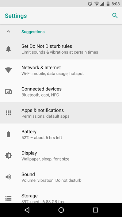 - Sélectionnez l’option Applications et notifications dans la liste.