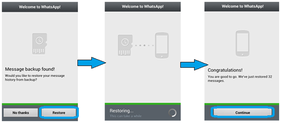 WhatsApp sauvegarde automatiquement l’historique des discussions tous les jours à 4 heures du matin selon l’heure du système. Le dossier de sauvegarde WhatsApp contient la sauvegarde de 7 jours. On peut facilement récupérer l’historique des discussions datant de moins de 7 jours en désinstallant et en réinstallant WhatsApp. Suivez les étapes ci-dessous: