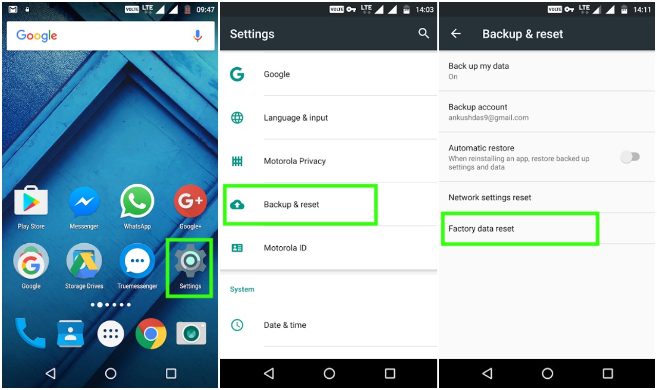 Si aucune des solutions ci-dessus ne fonctionne pour vous, réinitialisez votre appareil aux paramètres d’usine. C’est la seule option qui vous reste. Mais n’oubliez pas que la réinitialisation d’usine effacera toutes les données de l’appareil. Mais ne vous inquiétez pas, il vous suffit de sauvegarder et de restaurer les données sur le PC, puis de réinitialiser votre appareil en usine.